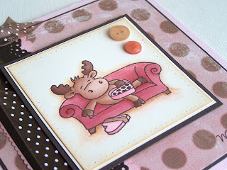 Couch Riley really needs a name change don't you think? Couch Riley makes me think of a sloth lying on the couch with his belly hanging out. Chocolate Riley sounds more appropriate. I wondering now if Mrs Kristi is saving the name (Choco Riley) for another stamp she has in that stash she has of over 500 Riley images to pull from! Kristi mentioned that at the release party or in a thread, I can't remember where now, but can you imagine that - 500 Rileys to choose from! I feel faint now! LOL
